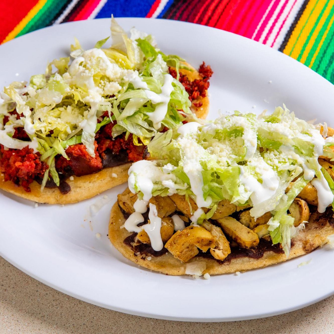 Tacos, tostada & huarache. Choice of 2 of our homemade sauces: super spicy salsa verde, hot salsa Roja, guacamole creamy sauce or pico de gallo.