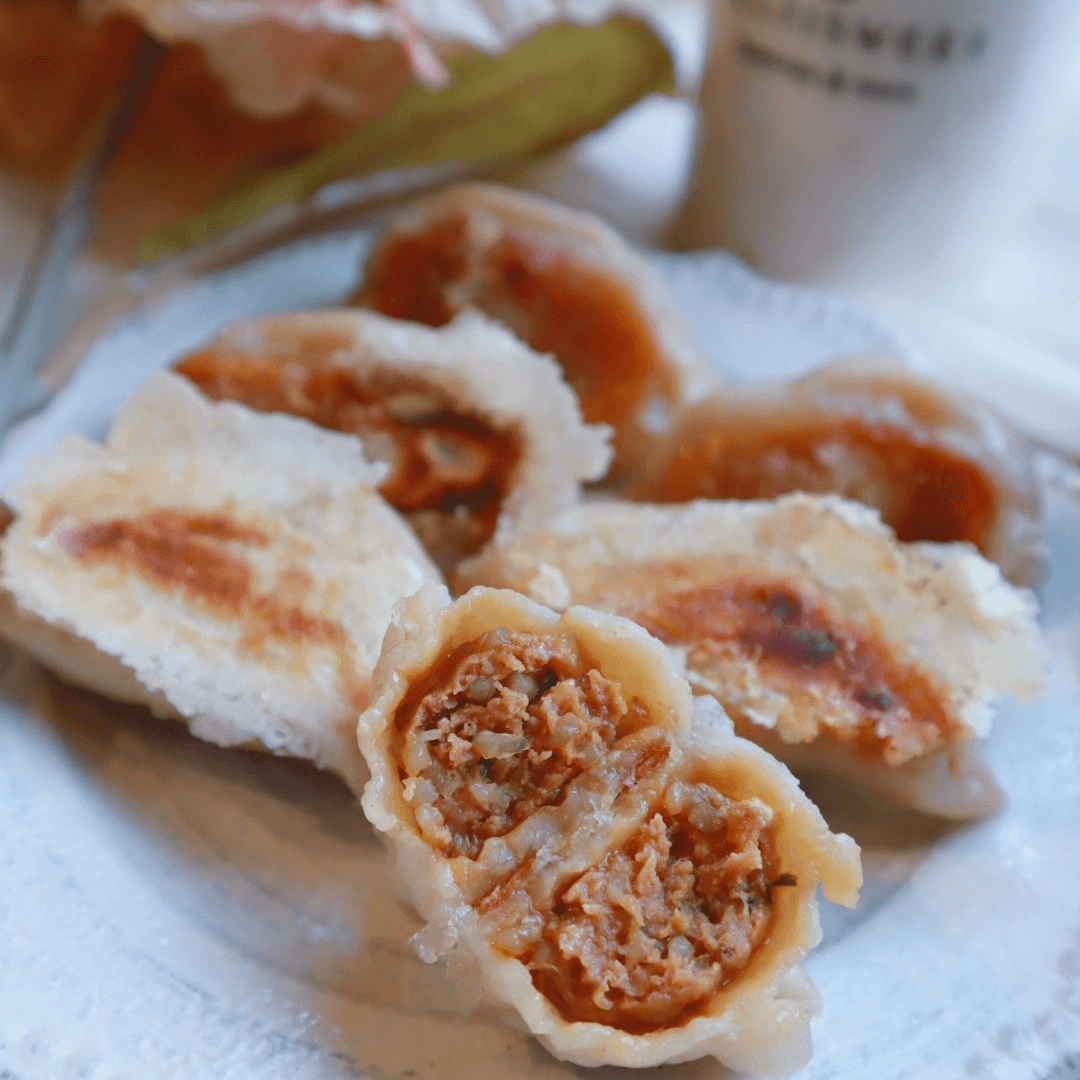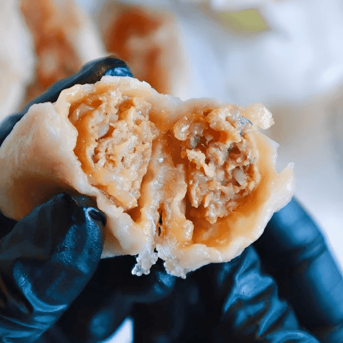 Frozen Beef & Onion Dumplings (25 pcs) A pack of 25 handmade frozen dumplings filled with seasoned beef and onion.