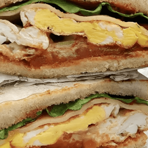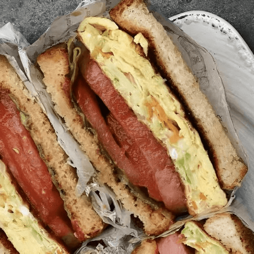 Light spam with tomato, egg, lettuce, and cheese - a healthy Korean-style sandwich