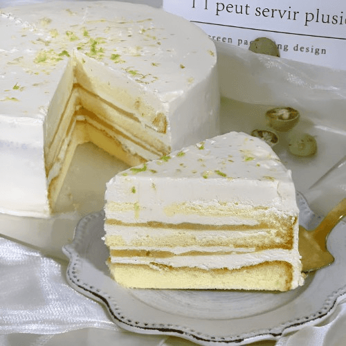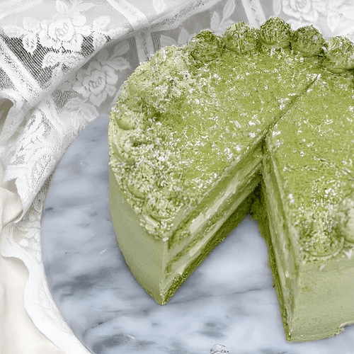 Light matcha chiffon cake layered with tangy lemon yuzu slices and smooth matcha cream. Finished with a sprinkle of white chocolate chips and a dusting of matcha powder for a vibrant and refreshing treat.