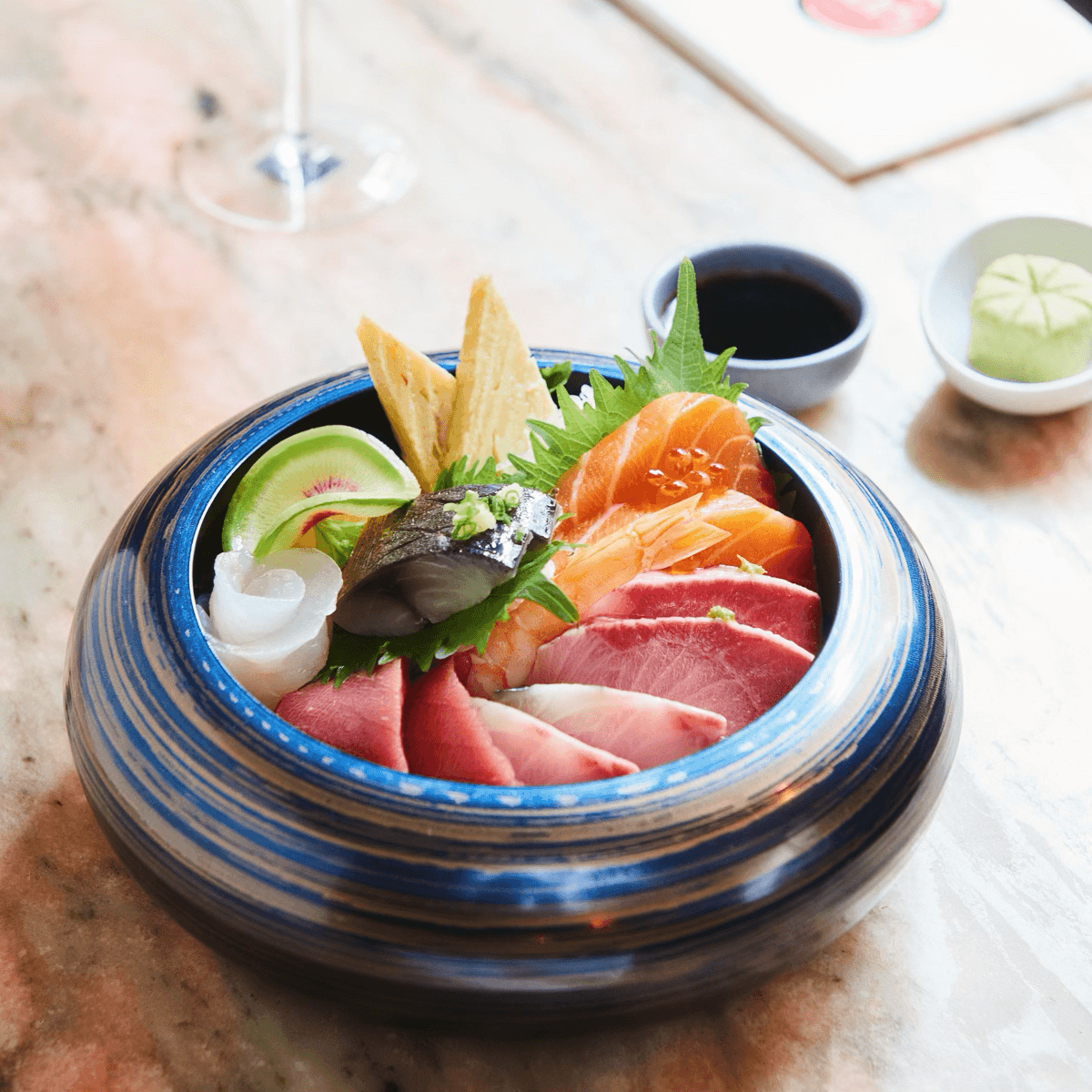 Tuna, salmon, avocado and assorted Japanese pickles served over sushi rice