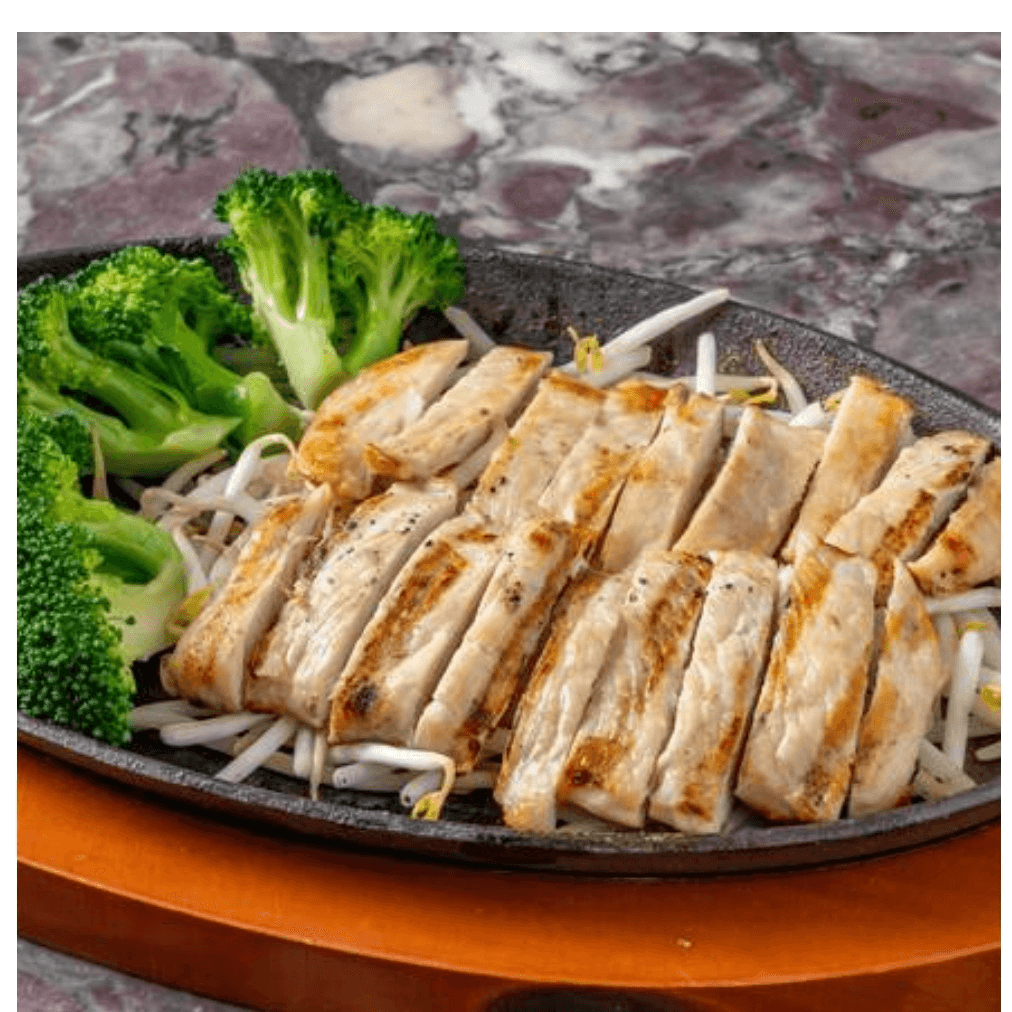 Grilled chicken breast, with sweet teriyaki sauce. Served with broccoli, bean sprouts and side of white rice