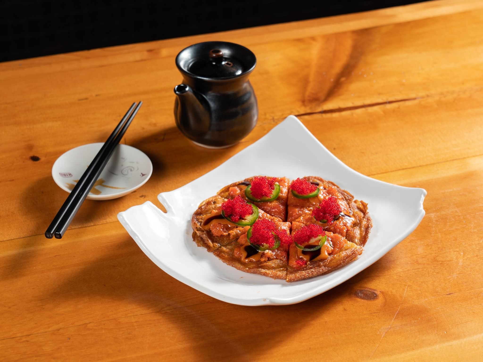 Spicy tuna and cream cheese on the inside, rolled and flash fried then topped with our chef's sauce